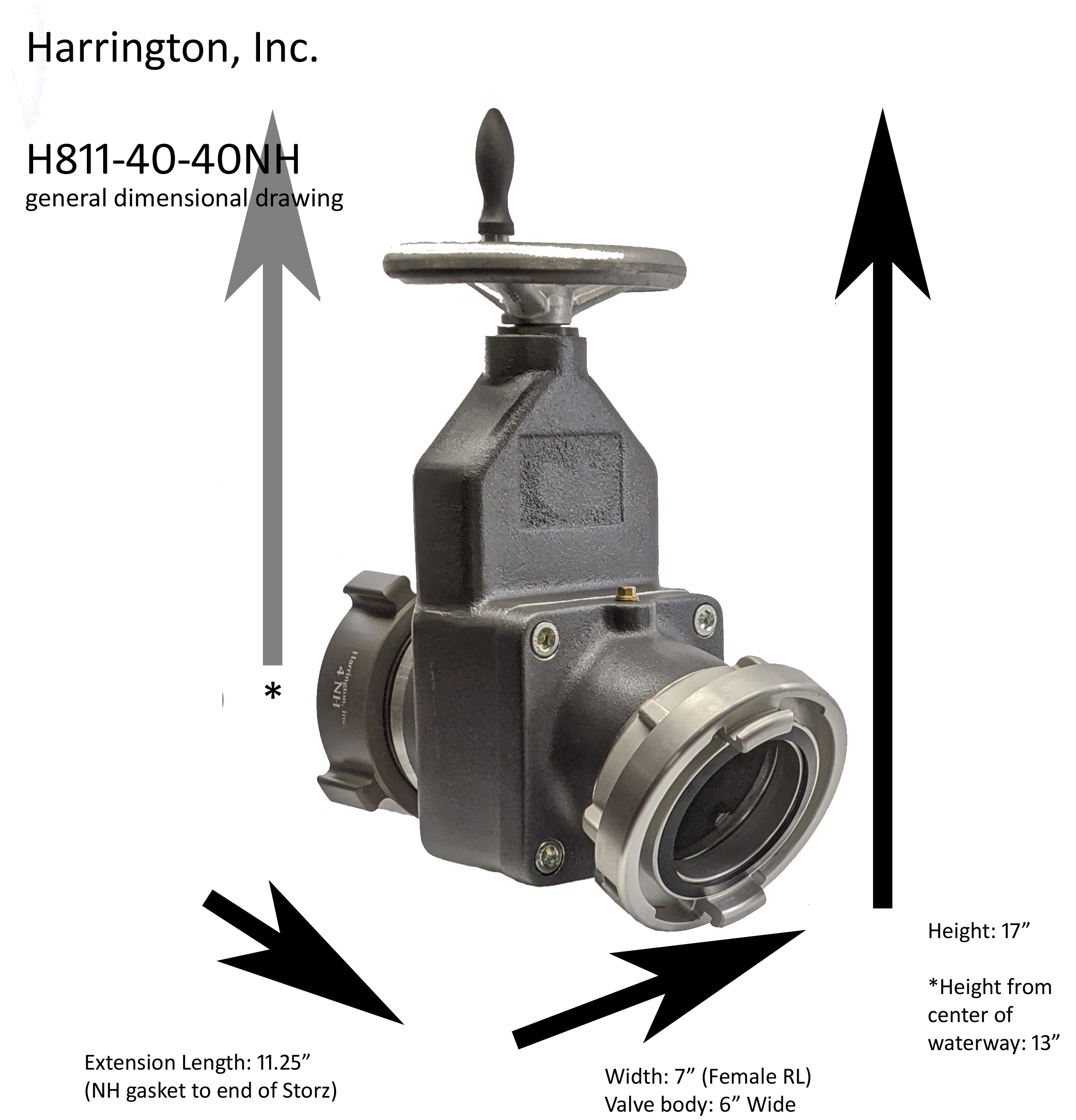 | H811-40-40NHLH | 4" Gate valve w/ 25° elbow 4" Storz lock x 4" NH female swivel long handle | $2,325.00 | |