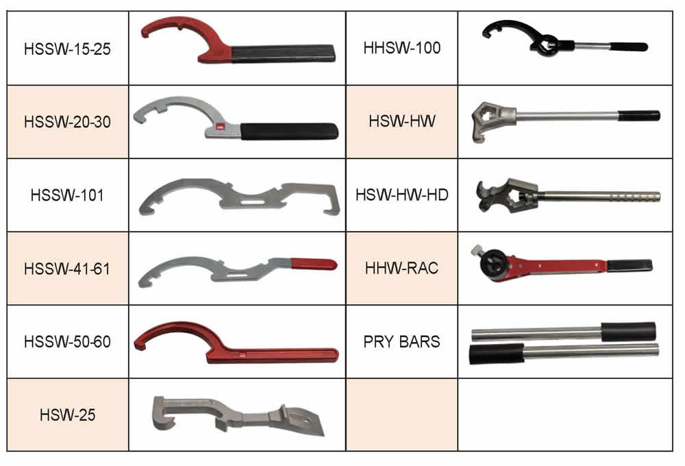 | HSSW-101 | Spanner Wrench, Single End, HARR, 2.5" to 5" | $55.00 |